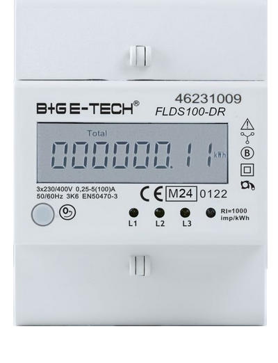 3 fase stroom DIN rail kWh meter met MID certificaat, t.b.v. monitoring van bijvoorbeeld een grote zonnepanelen installatie